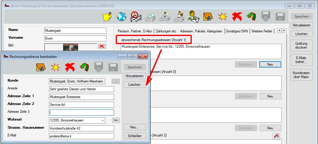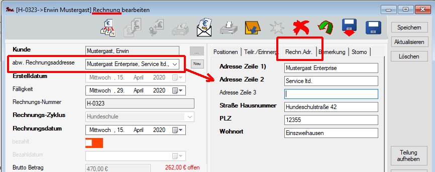 Abweichende Rechnungsadressen müssen in der Bearbeitungsmaske des Kunden erfasst wurde.