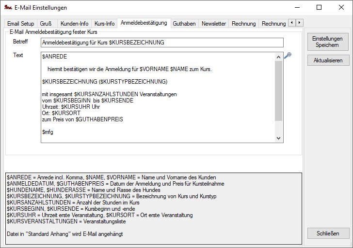 Wird beim Versenden der Anmeldebestätigung zu einem festen Kurs verwendet.
