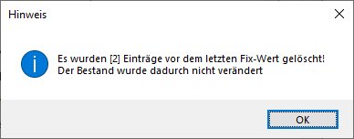 Mit der Funktion Änderungen aufräumen werden alle Bestandsänderungen gelöscht, die vor der letzten Bestandskorrektur (Bestand setzen) liegen.