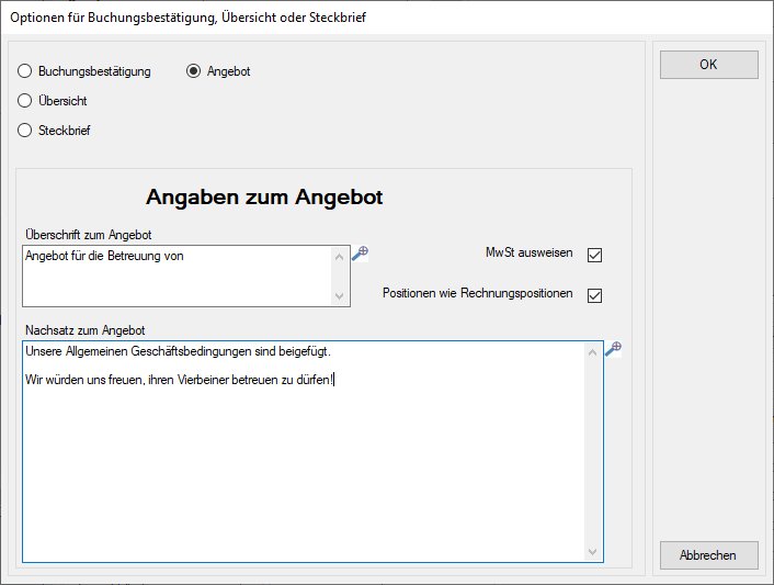 Ist der Status der Betreuungsvereinbarung angefragt, wird statt der Buchungsbestätigung ein Angebot gedruckt: