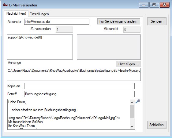 Buchungsbestätigung per E-Mail senden: Es öffnet sich die Sendemaske zum Versenden der Buchungsbestätigung