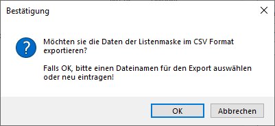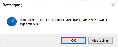 ist der Export von Daten aus jeder Listenmaske möglich. Bei Klick auf die Icons erscheint