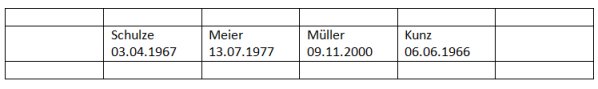 Manchmal ist es notwendig, Daten auch auf Spalten zu verteilen: Ein Beispiel ist die Kursliste für feste Kurse. Hier werden die Kursteilnehmer auf die Spalten der oberen Zeile verteilt.