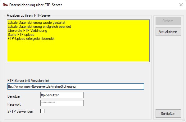 Eine weitere Methode zur Sicherung der Datenbank verwendet einen FTP-Server.