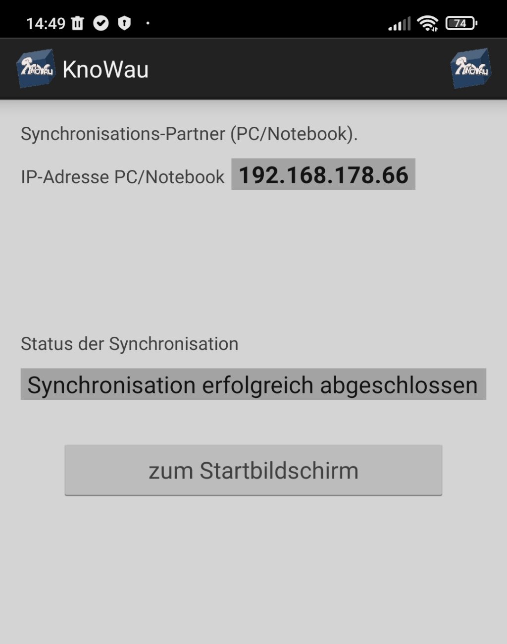 Nach Beendigung der Synchronisation erscheint ein Button "zum Startbildschirm".