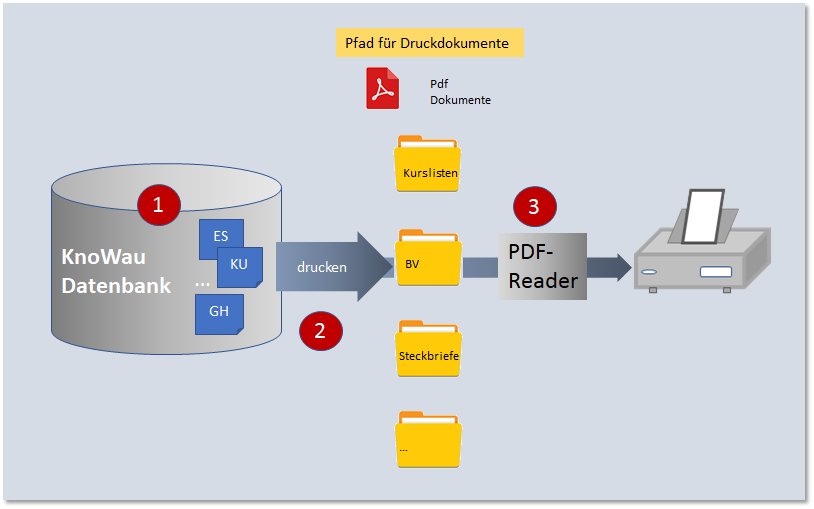 Was in KnoWau als Drucken bezeichnet wird, ist eigentlich das Erzeugen einer PDF-Datei.