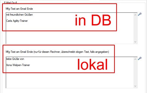 In der netzbasierten Variante kann auf jedem Rechner lokal ein eigener Ersetzungstext definiert werden. Hier gibt es das "allgemein" gültige Feld wie bei der Einzelplatz Variante und zusätzlich ein Feld für einen Text, der nur für diesen Rechner verwendet wird.