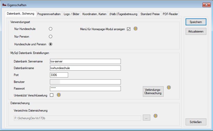 Die Zugriffsdaten zur MySql Datenbank werden in KnoWau im Dialog Datei->Eigenschaften angegeben.