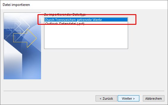 Option "Durch Trennzeichen getrennte Werte" auswählen
