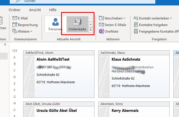 - Schritt 6: Die Importierten Kontakte werden u.a. als Visitenkarten angezeigt:
