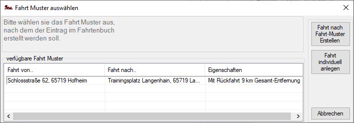 - Fahrt nach Muster erstellen: Muster aus den verfügbaren Fahrt-Mustern auswählen, Fahrt nach Muster erstellen klicken, fertig