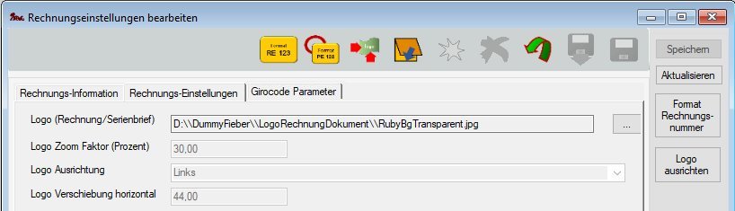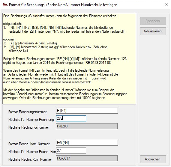 Nach Klick auf den Button Format Rechnungsnummer oder das zugehörige Symbol