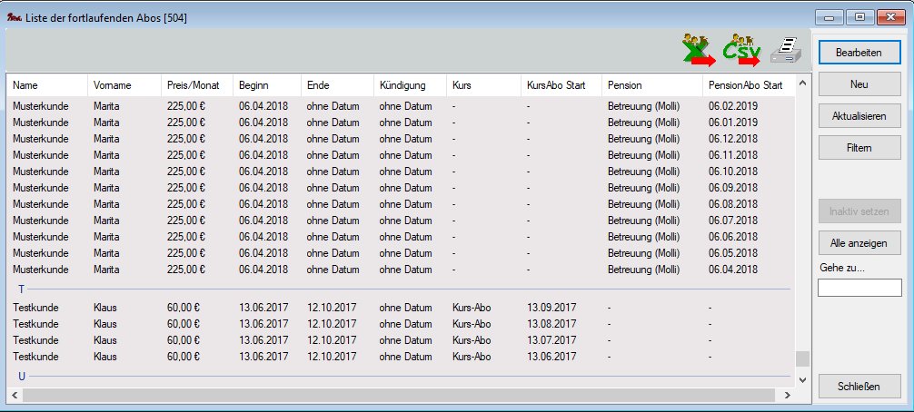 Eine Übersicht aller fortlaufenden Abos erhält man im Menü Verwaltung->Fortlaufende Abos.