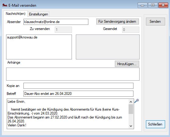 öffnet das E-Mail Versende Fenster mit einer vorformulierten Nachricht an den Abo-Kunden.