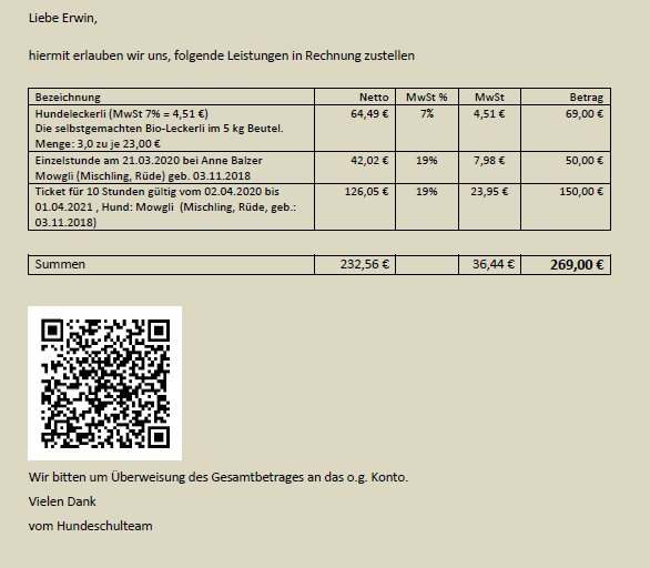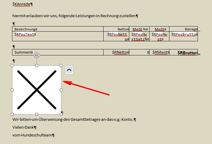 In der folgenden Skizze wurde die Bitmap für den Girocode unterhalb der Rechnungssumme eingefügt.