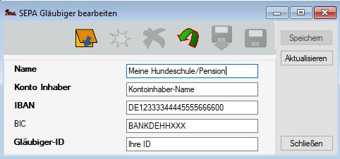 Erfassen der Gläubiger-Identifikation und weiterer Gläubiger-Daten über Menü Sonderfunktionen->SEPA Gläubiger Daten: