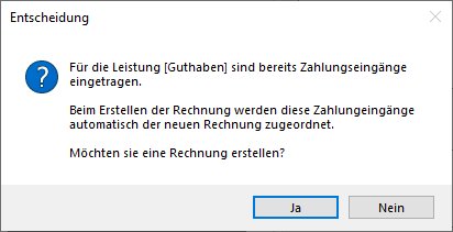 bevor die Rechnung erstellt wird. Falls bereits Zahlungseingänge beim Guthaben gebucht wurden, wird darauf hingewiesen.
