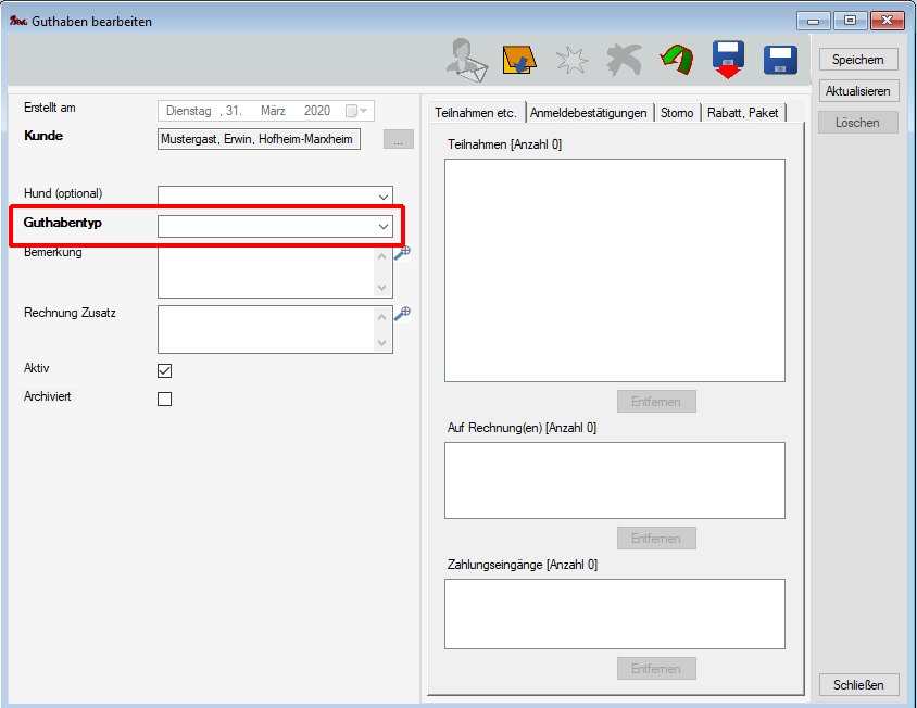 Durch Auswahl des Guthabentyps ändern sich die Felder auf der linken Seite:
