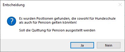 Quittung (für einen Zahlungseingang) drucken. Für die Kopfzeilen einer Quittung werden die Rechnungsparameter verwendet. Falls der Rechnungszyklus für Pension aktiviert wurde, erscheint die Abfrage, ob für die Kopfzeilen des Gutscheins die Rechnungsparameter der Pension verwendet werden sollen. Die Quittung kann im Anschluss an das Drucken direkt per E-Mail versendet werden.
