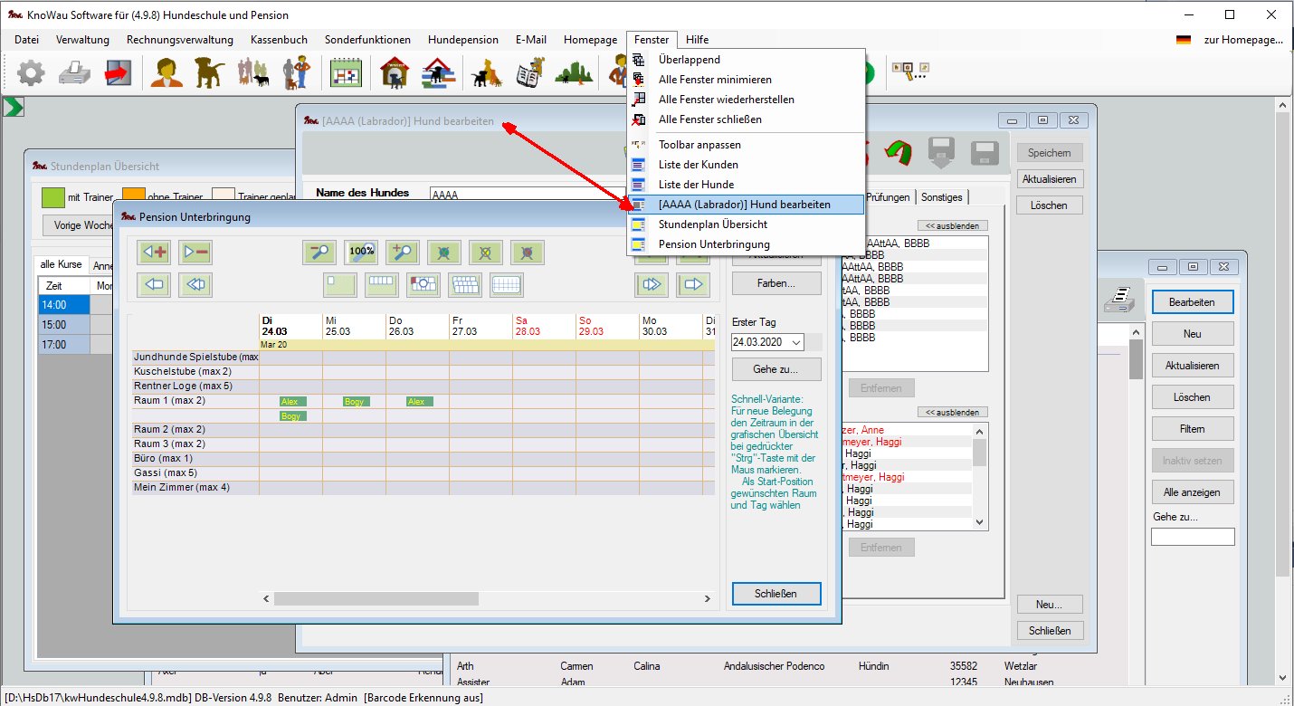 Alle Masken werden im Hauptfenster der KnoWau-Software geöffnet. Mehrere Masken können gleichzeitig geöffnet sein und sich gegenseitig überdecken. Eine Liste der geöffneten Masken erscheint im Menü Fenster.