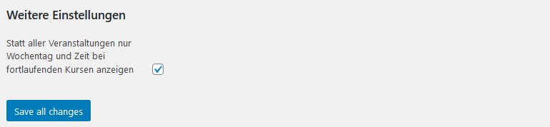 Im letzten Teil schließlich kann man angeben, ob für fortlaufende Kurse die Veranstaltungen angezeigt werden oder lediglich der Wochentag und die Uhrzeit der ersten Veranstaltung gezeigt wird.