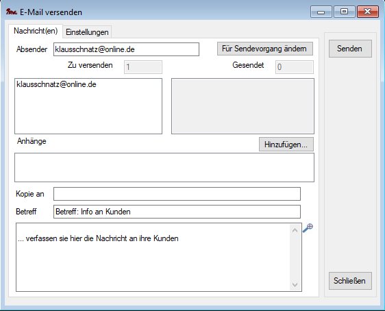 E-Mail an selektierte Kunden. Öffnet die E-Mail Sende-Maske.