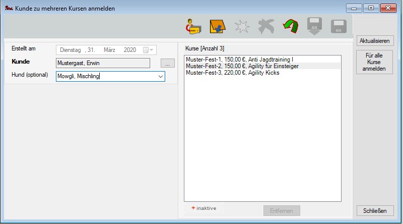 Ein Kunde kann zu mehreren Kursen in einem Arbeitsgang angemeldet werden.