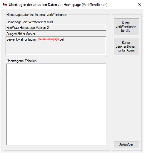 Kursdaten, die nur für den Administrator sichtbar sind, können nachträglich über den Administration-Bereich ihrer Homepage in die LIVE-Umgebung übertragen werden.