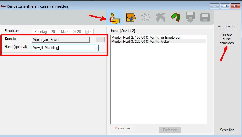 Kunde in einem Schritt zu mehreren Kursen anmelden