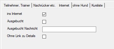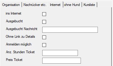 Wenn der Homepage-Modul genutzt wird, können im Reiter Internet die Parameter für die Veröffentlichung der Kursdaten im Internet gemacht werden.
