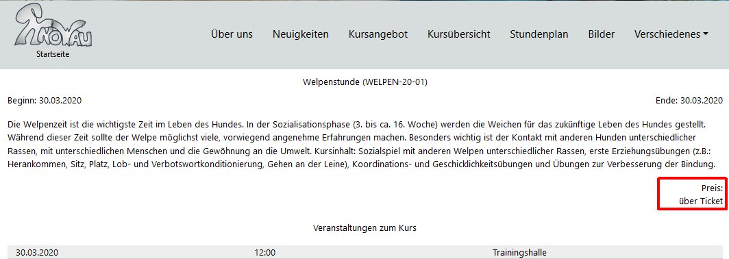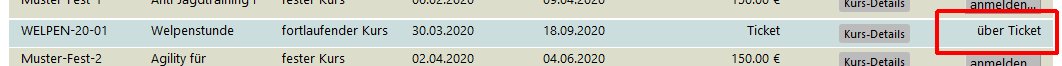 Zu fortlaufenden Kursen kann man sich eigentlich nicht anmelden, da die Teilnahme an fortlaufenden Kursen über Ticket-Guthaben geregelt wird. Ticket-Guthaben gelten im allgemeinen für alle fortlaufenden Kurse. Um dennoch die Anmeldung im Internet zu ermöglichen gibt es zusätzliche Felder, die letztlich den Verkauf eines Ticket-Guthabens mit Einschränkung auf den angezeigten Kurs darstellen: