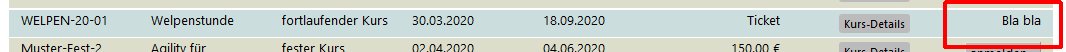 Für fortlaufende Kurse, zu denen sie keine Tickets mehr anbieten möchten, könnten sie dann zum Beispiel den Text Fortlaufender Kurs - Anmeldung über Ticket auch für fortlaufende Kurse verwenden. Statt Bla bla würde dann im Beispiel Fortlaufender Kurs - Anmeldung über Ticket stehen.