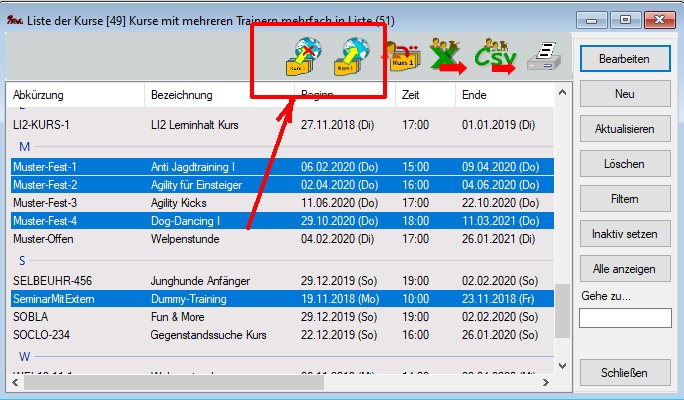 Man selektiert die gewünschten Kurse und klickt einen der beiden Icons: