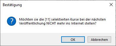 Selektierte Kurse NICHT mehr im Internet veröffentlichen: Klick öffnet die Abfrage