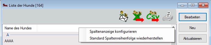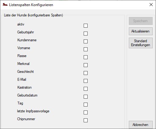 Danach erhält man eine Liste der möglichen Spalten (hier am Beispiel der Hundeliste),