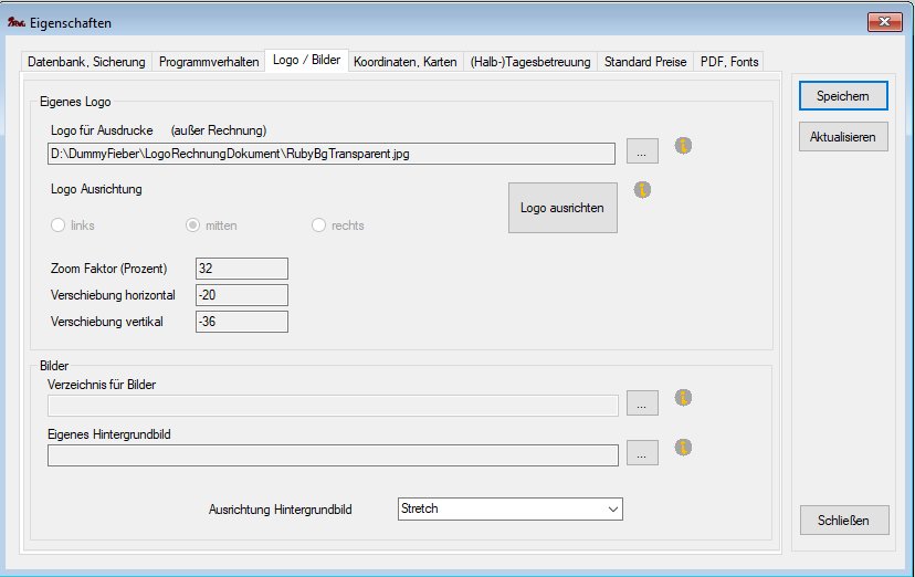 Zur Einrichtung des Logos wählt man im Feld Logo Ausdrucke die Logo-Datei aus. Die Positionierung geschieht über den Logo ausrichten Button analog zu Logo für Rechnung.
