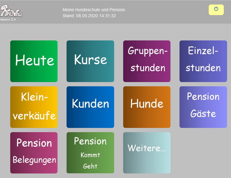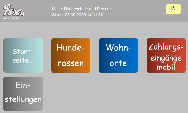 Über die Symbole gelangt man zu den jeweiligen Übersichten. Im Menüpunkt "Weitere" findet man die Übersicht der Hunderassen, Wohnorte sowie der mobilen Zahlungseingänge. Außerdem den Zugang zu den Einstellungen.