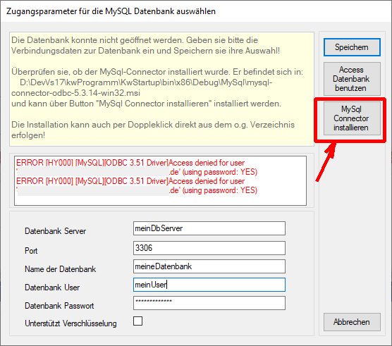 Falls KnoWau merkt, dass beim Zugriffsversuch auf die zentralen MySql Datenbank der Connector