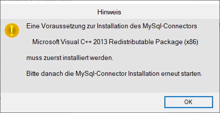 Falls eine bestimmte für den Betrieb des MySql Connectors notwendige Windows-Komponente noch nicht installiert ist, merkt KnoWau das, und muss zuerst diese Komponente installieren
