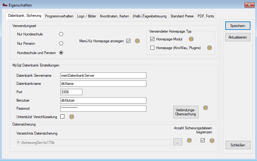 Bei Verwendung einer MySql Datenbank sind die Verbindungseinstellungen umfangreicher.