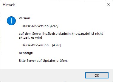 Anmerkung: Bei Versionskonflikten der Datenbank erscheint eine Meldung