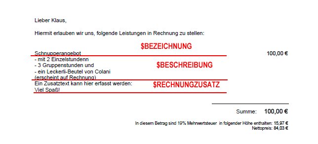 Anmerkung: Ein Rabatt ist in diesem Beispiel nicht vorgesehen, sonst würde auch der Text zum Rabatt in der Rechnungsposition erscheinen.