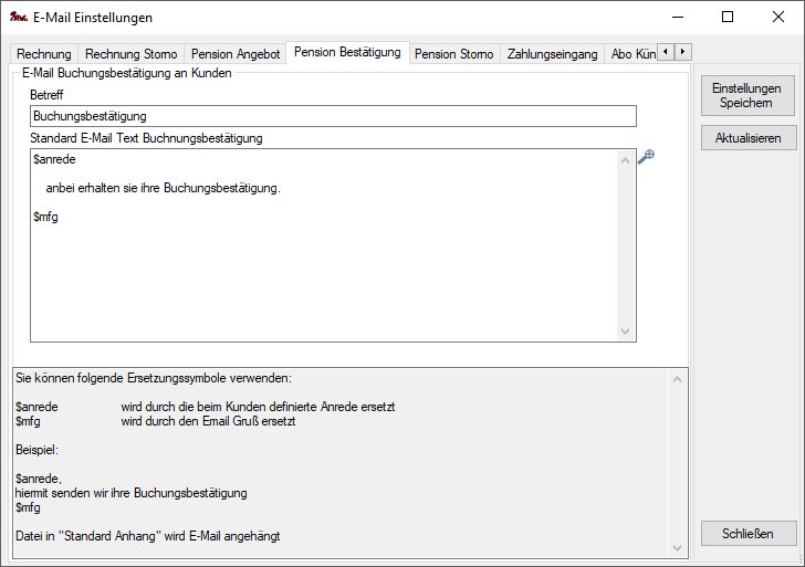 Wird beim Versenden der Bestätigung zu einer Betreuungsvereinbarung der Pension an den Kunden verwendet