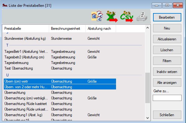Die Preise der Pension erreicht man über das Menü Hundepension->Preise.