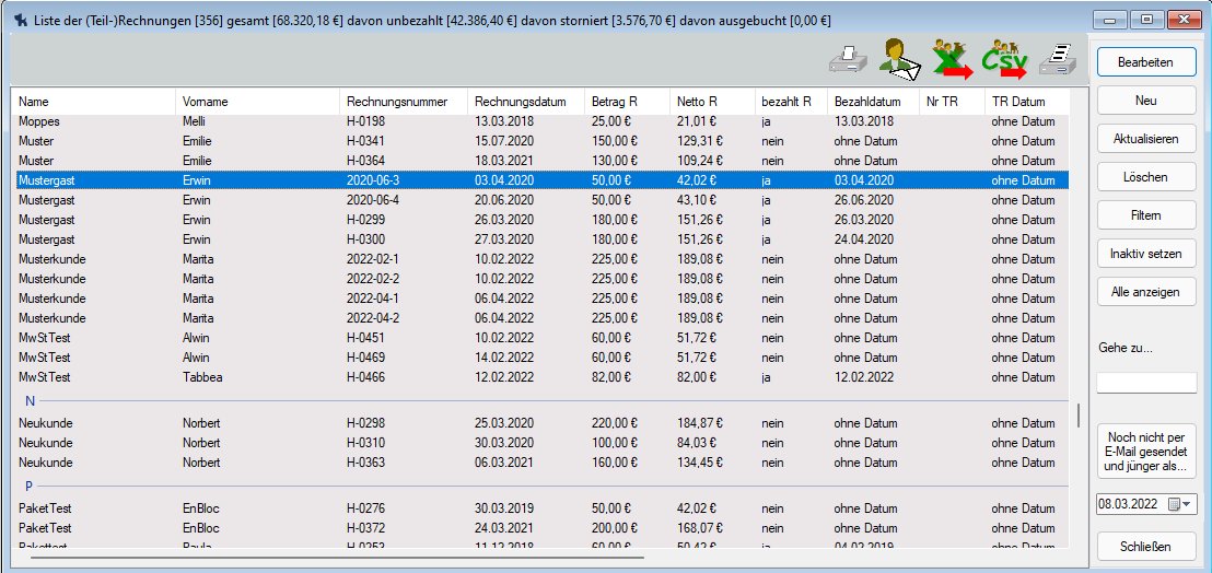 Die Liste aller Rechnungen erreicht man über das Menü Rechnungsverwaltung->Rechnungen.