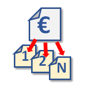 Die Beträge der Teilrechnungen können angepasst werden. Der Betrag der letzten Teilrechnung wird dabei immer so gewählt, dass die Summe der Beträge der Teilrechnungen den Betrag der Ausgangsrechnung ergibt. Nach dem Speichern werden die Teil-Rechnungen erzeugt und in der Bearbeitungsmaske der Ausgangsrechnung angezeigt.