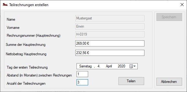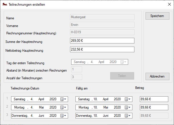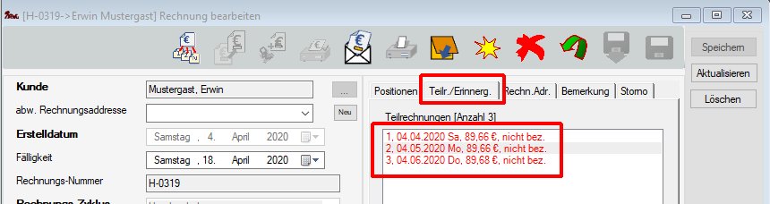Nach Klick öffnet sich die Maske Teilrechnungen Maske: