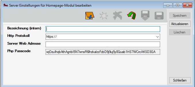 nach dem Speichern erscheinen zwei weitere Buttons, die erst funktionieren, wenn der Homepage-Modul auf dem Server erfolgreich installiert wurde . Die Installation des Homepage-Moduls ist auf unserer Homepage beschrieben.