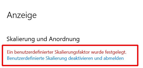 Daher wird dringend empfohlen, die Skalierung wieder auf die empfohlenen 100% zurückzustellen