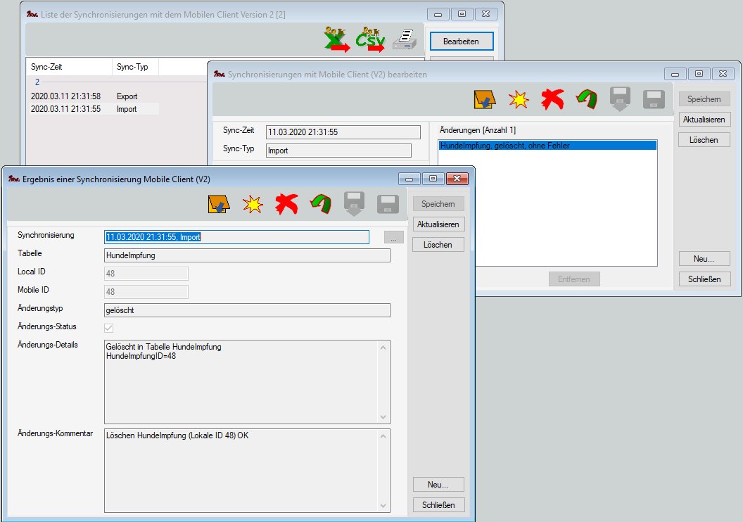 Die Übersicht der bisher ausgeführten Synchsonisationen enthält eine Liste aller Imports und Exports in chronologischer Reihenfolge.